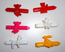 6 Vintage Girls Barrettes Plastic Animals Teddy Bear- Duck- Poodle- Cats 1 3/4"