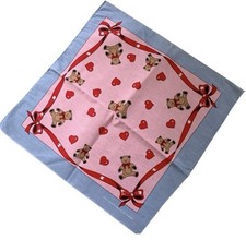 vintage handkerchief square pink blue teddy bears hearts love blend NOS