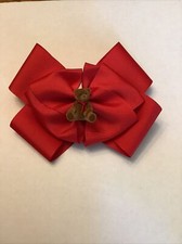 EXC Vintage Red Hair Bow Teddy Bear Barrette