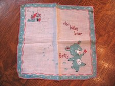 Vintage Unused Child's Handkerchief Betty The Baby Bear Googly Eyes Adorable NOS