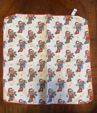 Vintage Christmas Bandana Red Green Wreath Teddy Bears USA Holiday NEW