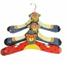 3 Vintage Wooden Child Baby Hanger Painted Teddy Bears BlueRed Read 0011
