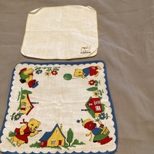 Vintage Adorable Lot Of (2) Child’s Hankies 1 Teddy Bears 1 Embroidered Deer