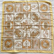 Vintage Scarf Silk Yellow Brown Rocking Horse Toy Car Antique Handkerchief 21"