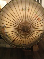 vintage antique Asian rice paper and bamboo parasol umbrella cherry blossom