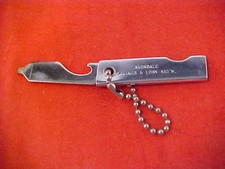 Bassett USA VTG Advertising Key Chain Folding Knife, Bottle Opener & Nail Tool