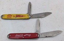 2 Vintage Coca Cola 5 Cents Bottle Advertising Pocket Knife USA Red Yellow Lot