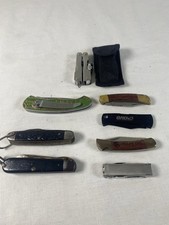 Lot Of 8 Pocket Knives Some Advertising Multi Tool One Camco One Can’t Read Name