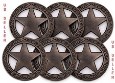 6 PC Antique Silver Engraved Ranger Star Conchos 1-1/2" Screw Back. US SELLER