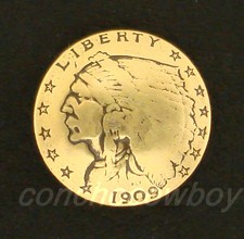 WESTERN TACK ANTIQUE GOLD INDIAN HEAD REPRODUCTION COIN CONCHO 3/4" SCREW BACK