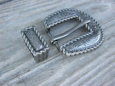 3 Piece Antique Silver Engraved Rope Edge Buckle Set Loop Tip 3/4"