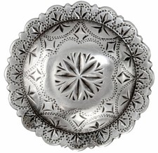 WESTERN SADDLE HEADSTALL TACK ANTIQUE ENGRAVED SCALLOPED SLOTTED CONCHO 1-1/4"