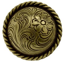 WESTERN LEATHER CRAFT TACK ANTIQUE ENGRAVED ROPE EDGE FLORAL CONCHO screw back