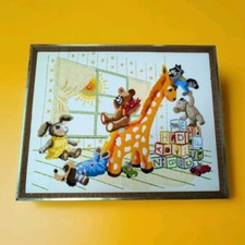 VTG Party Time For Toys Finished Framed Crewel Embroidered Nursery Baby Art 3D