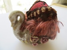 Antique Ceramic Swan Pincushion-with braid & extra antique pins