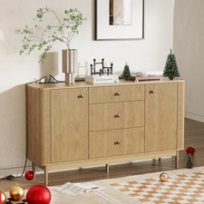 Mid Century Modern Fluted Sideboard Cabinet with 2 Outlet Holes, Buffet Cabinet