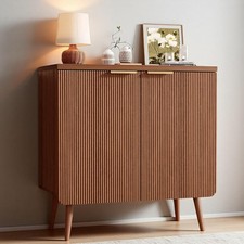 Walnut Mid Century Modern Fluted Sideboard Cabinet with Ample Storage