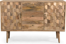 Zona Mid-Century Modern Mango Wood 3 Drawer Sideboard with 2 Doors