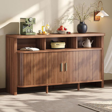 Mid-Century 63" Fluted Buffet Cabinet with Storage - Walnut Sideboard Credenza