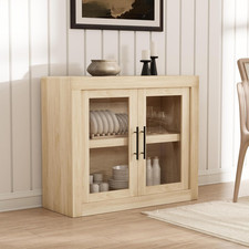 Mid Century Modern Wood Sideboard Buffet Cabinet with Glass Press-to-Open Doors