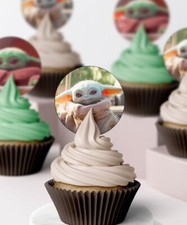 Star wars Baby yoda mando Edible Icing Wafer cupcake Topper Birthday Decoration