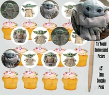 Baby Yoda Cupcake Picks Cake Toppers - 12 pcs, Mandalorian Star Wars TV Series
