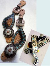 Ladies Metallic Floral TEAL Accented Antique Spurs & Or matching spur straps