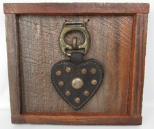 Hand Made Wood Plaque w Antique Leather Heart Design Brass Rivet Horse Tack