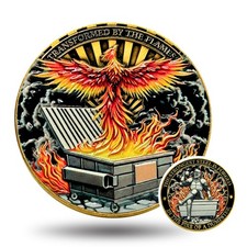 Dumpster Fire Challenge Coin - Phoenix & Knight Design - Small, Antique Gold