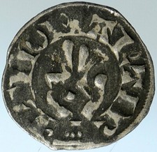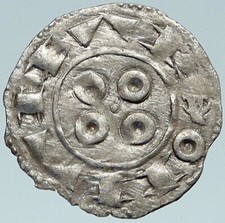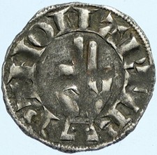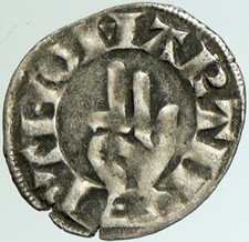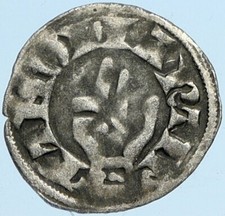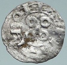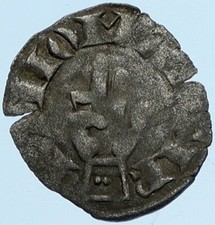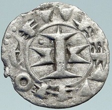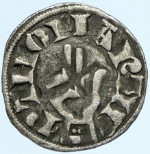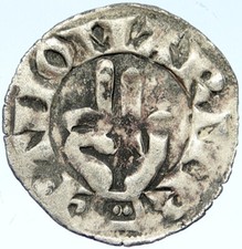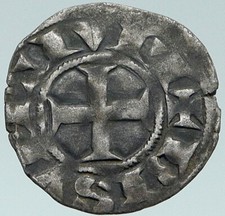 1000-1150AD FRANCE Medieval Feudal Antique Silver Denier Coin w CROSS i76047
