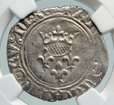 1380AD FRANCE King Charles VI Antique Silver OLD Gros Medieval Coin NGC i91608