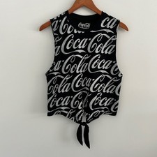 Mighty fine Coca Cola logo tank top muscle tee tie front wide arm opening