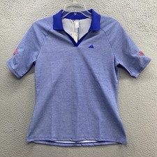 Adidas Golf Polo Shirt Women's S V-Neck Collared AJGA Coca Cola Logo Blue Top