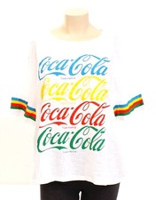 Womens Coca Cola Coke Soda Graphic Cream Color Rainbow Logo Shirt Size Medium