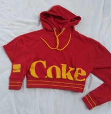 Coca Cola Ladies Crop Top Red Long Sleeve Hooded Drawstring Graphic Print M
