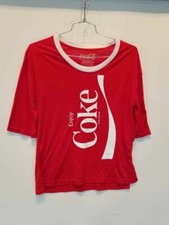 Coca-Cola Womens Jersey Top Shirt Red White 3/4 Sleeve Logo XS