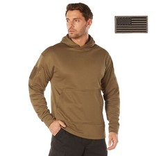 Mens Coyote Brown Concealed Carry Tactical Hooded Hoodie Sweatshirt & USA Patch
