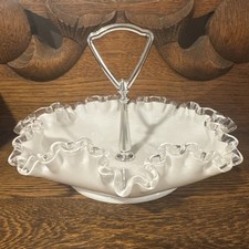 Vintage Fenton Silver Crest Ruffled Rim Handled Candy Dish