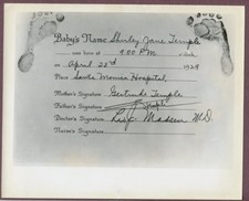 SIRLEY TEMPLE Birth Certificate Foot Prints 1930's Hollywood Book Photo J925