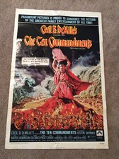 Antique Vintage Original Theather Movie 1 Sheet Ten Commandments No Repro