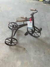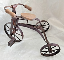 Vintage Metal Tricycle Wrought Iron Wood Toy Sculpture Rustic Farmhouse Rustic
