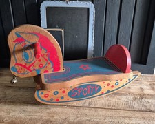 Vintage 1950’s Spotty Wood Wooden Rocking Horse Riding Toy