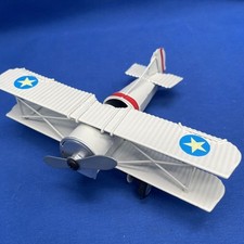 Vintage Metal Biplane Model Aircraft Kids Toy Retro Decor 6x5in Red White Blue