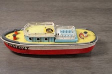 Vintage 1950s Marusan (SAN) Tug Boat TIN TOY made in Japan battery operated boat