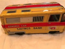 Vintage Japanese Tin Toy Armored Van Savings Bank by Hayashi