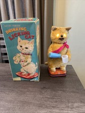Vintage TN Japan Drinking Licking Cat Tin Toy With Box