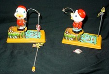 2 VINTAGE YONE TIN WIND-UP DUCK FISHING TOYS - #2104 - WORKING - SEE DETAILS