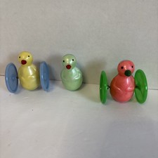 Lot 3 Vintage Nodder Toy Plastic PENGUINS 2/ WHEELS 1 W/O Celluloid 2.25" x 2"