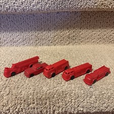 5 Vintage Small Plastic Fire Trucks & Car Cereal Premium Box Toy Prize