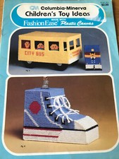 Vintage 1980 Children's Toy Ideas Plastic Canvas Pattern Leaflet Bus Bank Blocks